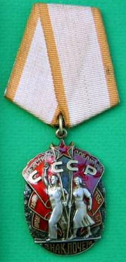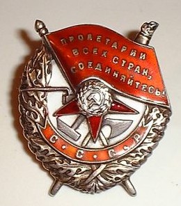 ORDRE du DRAPEAU ROUGE Créé le 16 Septembre 1918 par décret du Comité Central des Soviets, c'est la décoration la plus largement décernée, elle fut attibuée à plus de 13 millions de personnes et à 3100 unités entre 1941 et 1945. (1° et 2° modèles). L'Ordre est destiné à récompenser les militaires et les partisans qui ont accompli des actes exceptionnels de courage au combat, au péril de leur vie.