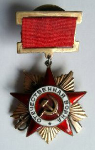 ORDRE de la GUERRE pour la PATRIE Cet Ordre date du 20 Mai 1942, décliné en deux classes (or et argent), plus de 350 000 personnes ont reçu l'Ordre de première classe et 1 028 000 l'ordre de seconde classe.Il est destiné à récompenser les membres des forces armées et les partisans ayant fait preuve d'un grand courage au cours des combats de la 2° Guerre Mondiale. |