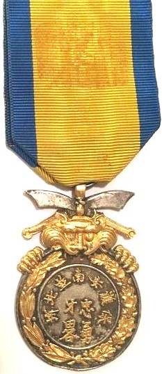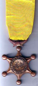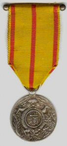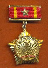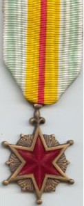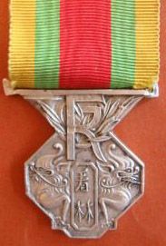 Médaille de la Victoire (Etoile HUAN CHONG) créée le 15 mai 1947 le nombre d'étoiles sur le ruban indique la classe (3 étoiles = 1ere classe, 2 étoiles = 2ème classe, 1 étoile = 3 ème classe)