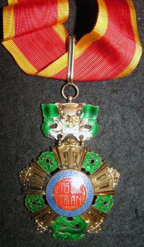 du protectorat de l'Annam et du Tonkin. Cette décoration n'eut en fait qu'une brève existence, car le 1er mai 1891, moins d'un an après sa création, elle fut supprimée.