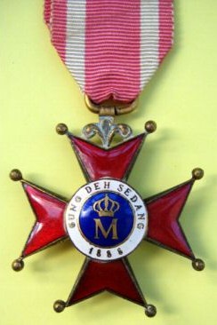 Ordre du Mérite de SEDANG (le Royaume de SEDANG a été un Etat éphémère ~ 2 ans, créé en Indochine, en 1888, par le Baron de Mayrena, aventurier français qui se fit proclamer Roi du pays des Sédangs).