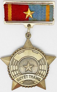 Ordre de la Résistance (Etoile de Khang Chien) créé le 20 août 1948, cet Ordre prend le nom de "Médaille de la Résistance" le 20 juillet 1954 et est décernée pour l'ensemble des "Guerres du Vietnam", jusqu'au 30 avril 1975. 3 classes selon le nombre d'étoiles figurant sur le ruban