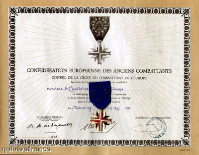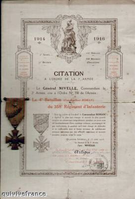 | Citation et Croix de Guerre 1914 - 1918  (FRANCE) | Étoile de la Fidelité  (FRANCE) |