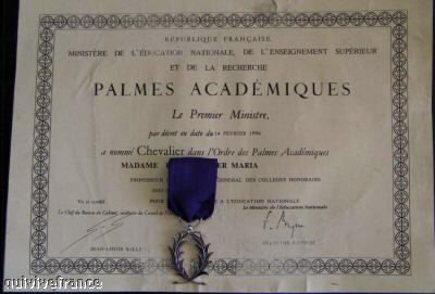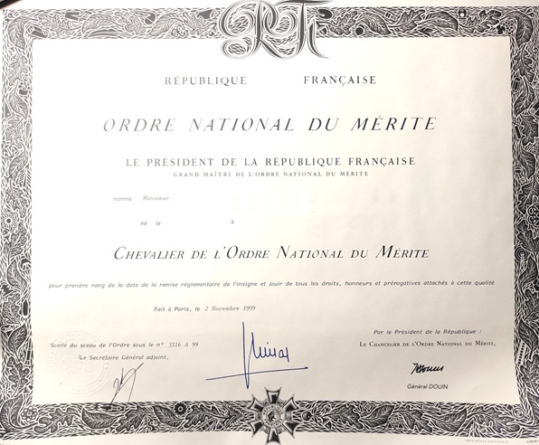 | Ordre National du Mérite (FRANCE) | Médaille d'Honneur de la Famille  (FRANCE) |