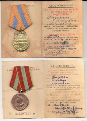 Médailles commémorative de la prise de Budapest (en haut) et Médaille