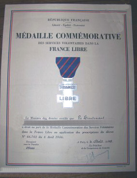 | Médaille de l'Association artistique Belgo-hispanique | Médaille Commémorative de la France Libre (FRANCE) |