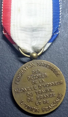 Médaille de la Fédération Nationale des Décorés de la Médaille d'Honneur du Travail de France et de l'Union Française (ancien modèle)