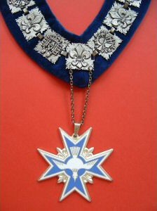 Croix du Saint-Esprit du Cordon bleu Ordre associatif allemand, créé dans les années 1990, qui a repris les insignes et la symbolique de l'ancien Ordre royal français. https://www.cordon-bleu-du-saint-esprit.eu/de/der-orden Merci à Monsieur Dominique DELGRANGE, Secrétaire général de la Société française d'héraldique et de sigillographie qui m'a signalé ce fait.