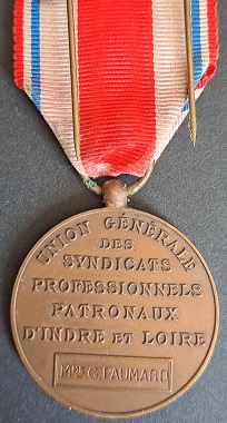 Médaille de Mérite de l'Union Générale des Syndicats Professionnels Patronaux d'Indre et Loire, créée en 1891