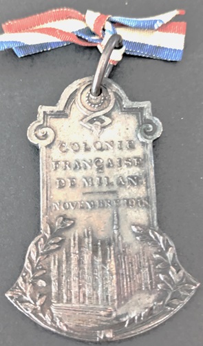 Médaille patriotique de la communauté française de Milan (Italie) qui