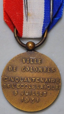 Médaille du cinquantenaire de l'École Laïque Ville de Colombes 5 juillet 1931 (Photo : JC. SCHMIT) |