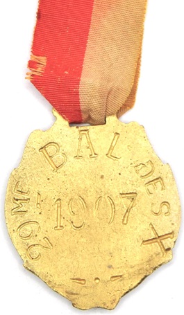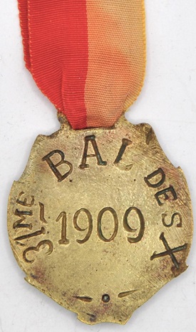 mm de longueur portant d’un côté les armes de l’Ecole, de l’autre la mention « Nième Bal de l’X » avec indication de l’année. Elles étaient accrochées à un petit ruban de soie de couleur variable.