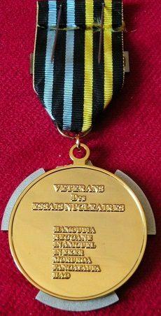 Médaille de l'AVEN (Association des Vétérans des Essais Nucléaires français et leurs familles) Association Loi 1901 qui regroupe les personnels militaires et civils ayant participé aux essais nucléaires français du Sahara et de Polynésie entre 1960 et 1996 et qui s'interesse aux liens entre les essais nucléaires et la santé des personnes concernées par ceux-ci. https://aven.org |