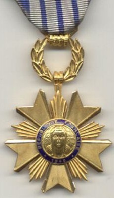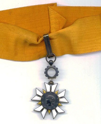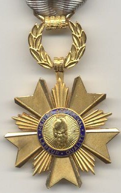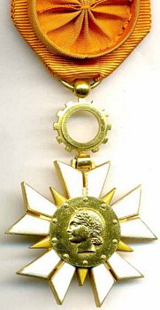 ORDRE DU MÉRITE DU TRAVAIL Créé par Décret en date du 21 janvier 1957, l'Ordre était destiné à récompenser toute personne s'étant distinguée, soit par sa valeur professionnelle, soit par la durée et la qualité de ses services, soit par son comportement à l'égard de ses compagnons de travail. L'Ordre comprenait trois classes : Chevalier, Officier et Commandeur. L'Ordre était géré par le Ministre du Travail, assisté d'un Conseil de l'Ordre. Le bijou était en argent pour le grade de Chevalier, en or ou en vermeil pour les deux autres grades. Il est à noter que le Gouvernement de Vichy avait déjà créé un Ordre National du Travail en 1941, Ordre qui fut aboli en 1944 (Cf. page précédente).
