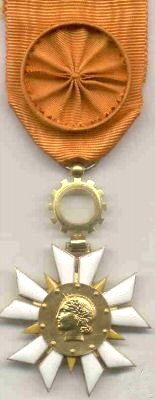 ORDRE DU MÉRITE COMMERCIAL ET INDUSTRIEL Créé par Décret en date du 27 mai 1939, l'Ordre du Mérite Commercial avait pour but de récompenser les services rendus à l'activité économique et au commerce extérieur de la France, par des personnes que distinguait leur valeur professionnelle. Le décret du 29 juin 1961 créa la nouvelle dénomination de : "Ordre du Mérite Commercial et Industriel". L'Ordre comportait trois classes : Chevalier, Officier et Commandeur. Il était administré par le Ministre de l'Industrie et du Commerce, assisté d'un Conseil de l'Ordre. Le bijou est l'oeuvre du graveur Guiraud. Il a existé quatre types différents de bijou.