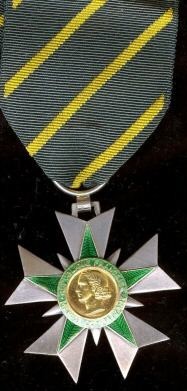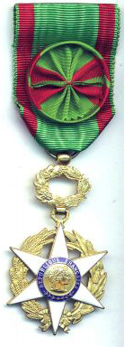 ORDRE DU MÉRITE AGRICOLE Créé par décret en date du 7 juillet 1883 pour récompenser toutes les personnes méritantes dans le domaine de l'agriculture mais qui ne pouvaient toutefois pas prétendre à obtenir l'Ordre de la Légion d'Honneur. A l'origine, l'Ordre ne comportait qu'une seule classe : les Chevaliers. Le décret du 18 juin 1887 créa la seconde classe : les Officiers. La troisième classe : les Commandeurs fut créée en 1900. L'Ordre est géré par le Ministère de l'Agriculture, assisté d'un Conseil Supérieur du Mérite Agricole. Les promotions annuelles sont strictement contingentées, ce qui rend cet Ordre de Mérite particulièrement difficile à obtenir. Il est souvent surnommé "le Poireau".