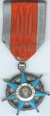 ORDRE DU MÉRITE SOCIAL Créé par Décret en date du 25 octobre 1936, cet Ordre prenait la place des Médailles de Secours Mutuels, créées par un Décret du 26 mars 1852 et des Médailles d'Honneur créées par le décret du 27 mars 1858. Ces décorations, étant considérées comme des médailles associatives, ne pouvaient être portées en dehors des cercles de Secours Mutuels. Parallèlement, furent créées, par les décrets de 1922 et 1923, les Médailles de la Prévoyance Sociale et des Assurances Sociales. Toutes ces décorations furent remplacées par le nouvel Ordre ainsi créé, qui avait pour vocation à récompenser les personnes ayant rendu des services désintéressés et dévoués aux oeuvres mutualistes et sociales. Le Mérite Social comportait trois classes : Chevalier, Officier et Commandeur.