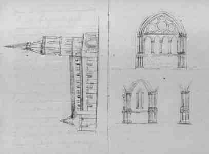 Au moyen de ces constructions, cette église deviendra plus belle et offrira au voyageur un plus grand intérêt : aussi ne m'a-t-il pas été facile de juger de ses ornements qui ont tous été enlevés, on y a laissé seulement les objets indispensables pour les cérémonies religieuses. L'ensemble de cette église ne frappe point la vue par sa régularité, les colonnes et les voûtes du choeur et des chapelles sont élégantes mais celles des nefs fort étroites et très sombres forment un désagréable contraste. Le plan et l'exécution n'approchent point de l'ensemble de celle de Chambon sur Voueize : l'église de Sainte Valérie, construite en pierre de taille, avec ses larges nefs, ses stalles richement sculptés, son élégante flêche et sa belle ceinture de chapelles surpasse de beaucoup celle que j'ai essayé de décrire. Le reste de la journée se passa en promenades qui me procurèrent pendant la nuit un agréable sommeil.